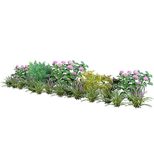 シックなアジサイ、小さくて主張しないコバノズイナに明るい葉色のシモツケと斑入りのヤブランが入るとナチュラルでいてモダンで明るくなります。 セットに含まれる品種:ガクアジサイ、コバノズイナ、シモツケ・ゴールドフレーム、フイリヤブラン