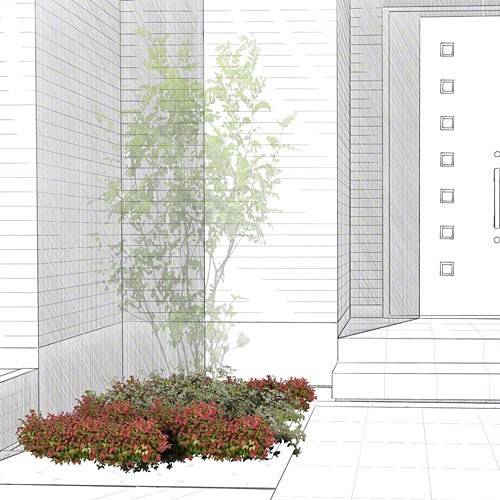 日当たりの量や温度によって多彩な色合いを見せるそれぞれの植物の特徴を使って彩りのある空間ができます。 セットに含まれる品種:アベリア・ホープレイズ、オタフクナンテン