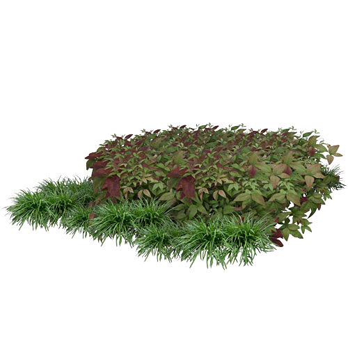低くしっかりとしたテクスチャーを作る組み合わせです。やや濃い緑のアキシラリスは新芽の寒い時期の真っ赤な表情が美しい。 セットに含まれる品種:イワナンテン・アキシラリス、キチジョウソウ