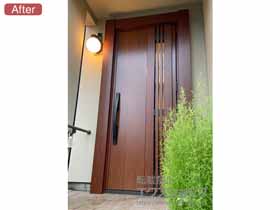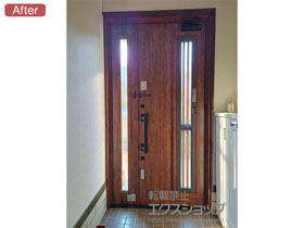 この度は、リシェント玄関ドア3 M83型の施工をエクスショップにお任せ下さり、誠にありがとうございます。アンティークオークのカラーが、重厚感があり素敵なお仕上がりですね。ご自宅の顔である玄関ドアが一新され、お家全体の雰囲気も更に良くなったのではないでしょうか。従来のドアよりも断熱性や開閉のスムーズさが向上し、防犯面でも安心して頂けるものと存じます。お気に召して頂き、この先長くご愛用頂けますと幸いです。エクスショップでは、暮らしを豊かにするエクステリア商品を多数取り揃えておりますので、また機会がございましたら是非弊社にご用命下さいませ。心よりお待ち致しております。