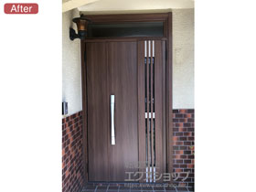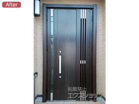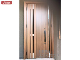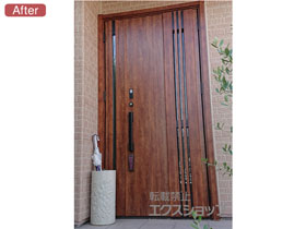 この度は、リシェント玄関ドア3 M83型の施工をエクスショップにお任せ下さり、誠にありがとうございます。アンティークオークのカラーが、重厚感があり素敵なお仕上がりですね。ご自宅の顔である玄関ドアが一新され、お家全体の雰囲気も更に良くなったのではないでしょうか。従来のドアよりも断熱性や開閉のスムーズさが向上し、防犯面でも安心して頂けるものと存じます。お気に召して頂き、この先長くご愛用頂けますと幸いです。エクスショップでは、暮らしを豊かにするエクステリア商品を多数取り揃えておりますので、また機会がございましたら是非弊社にご用命下さいませ。心よりお待ち致しております。