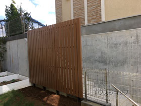この度は、フェンスの施工をご依頼頂きまして誠に有り難うございます。温かみのある木調デザインは、お住まいの雰囲気にぴったりでございますね。シンボルツリーとも調和しています。程よい目隠し効果がありながら、採光性・通風性も確保しますので、快適にお過ごし頂けることと存じます。天然木のような特別なメンテナンスも不要ですので、安心して長くご愛用頂けることと期待しております。これからもお客様に笑顔をお届けできますよう、社員一同努めて参ります。またの機会がありましたら、是非エクスショップをご利用下さいますよう宜しくお願い申し上げます。
