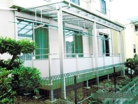 ソラリア F型 1500 テラスタイプの施工をご依頼頂きまして、誠に有り難うございます。掃き出し窓から雨が吹き込むのを防ぎ、直射日光も遮られるため、屋根の下だけでなく、室内でも快適にお過ごし頂けるものと存じます。空模様の怪しい時は、洗濯物の干し場としてもご活用頂け、雨の度に洗濯物を取り込むといった手間もなくなるものと存じます。今後も、エクステリアの施工を通してお客様に笑顔をお届け出来ますよう、日々精進して参ります。また機会がございましたら、是非エクスショップにご用命頂きますよう宜しくお願い致します。