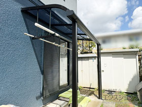 この度は弊社でソラリア R型 テラスタイプの施工のご依頼を頂きまして、誠に有り難うございます。ご自宅に違和感なく収まりましたテラス屋根は、熱線遮断ポリカーボネート(クリアマット調)の屋根が青空に映え、スタイリッシュなお仕上がりでございますね。屋根のあるスペースで気軽にお洗濯物を干して頂け、お部屋への直射日光を遮る事で、室内でも過ごして頂きやすくなるのではないでしょうか。天候を気にせずにお洗濯物を干して頂けるようになる事で、家事効率が向上しましたら幸いでございます。これからもお客様のご要望に適った施工の提案が出来るよう、スタッフ並びに提携施工店一同努力を重ねて参りますので、今後もエクスショップをご愛顧頂きますよう、宜しくお願い申し上げます。