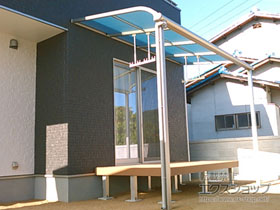 この度は、 ソラリア R型 の施工をエクスショップにお任せ下さり、誠にありがとうございます。明るいカラーのテラス屋根で、すっきりと爽やかな印象のお仕上がりとなりましたね。室内に入り込む紫外線や雨をカットし、多少の雨なら外に洗濯物を干すことも出来ますね。屋根のあるスペースが少しでも増えることで、様々な用途で便利にお使い頂けますので、長くご愛用頂けますと幸いです。エクスショップでは、暮らしを豊かにするエクステリア商品を多数取り揃えておりますので、また機会がございましたら是非弊社にご用命下さいませ。心よりお待ち致しております。