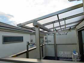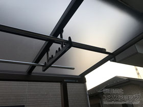 ソラリア F型 ルーフタイプとソラリア F型 屋根タイプの施工のご依頼を頂きまして、誠に有り難うございます。プラチナステンのフレームのバルコニー屋根が、ご自宅の外観に違和感なく調和し、既存のサッシ等のお色ともマッチし、備え付けのような一体感がございますね。屋根が出来ると、暗くなってしまうイメージがございますが、熱線遮断ポリカーボネート(クリアマット調)の屋根は採光性が高く、とても明るいお仕上がりとなりました事、喜ばしく存じます。天候に気兼ねなくお洗濯物を干して頂ける事で、家事効率が向上しましたら幸いでございます。これからもお客様満足度100%を目指し、スタッフ一同日々精進して参りますので、今後もエクスショップをご愛顧頂きますよう、宜しくお願い申し上げます。