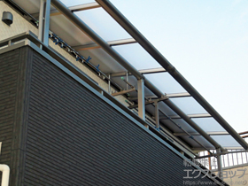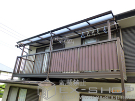 プレシオステラスII F型の施工をご依頼頂きまして、誠に有り難うございます。間口の広いバルコニーですが、屋根幅の広いポリカーボネート(ガラスマット)の屋根が隅々までカバーし、バルコニーを有効にご活用頂けるものと存じます。雨が降っているときも窓を開けて換気することが出来、少しでも快適にお過ごし頂けるものと存じます。今後も、エクステリアの施工を通してお客様に笑顔をお届け出来ますよう、日々精進して参ります。また機会がございましたら、是非エクスショップにご用命頂きますよう宜しくお願い致します。
