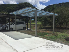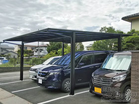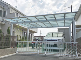 前回とサイズ違いで施工して頂きました。これで、ほぼ敷地全体が屋根で覆われて雨風や花粉、黄砂等被らずに愛車を守れると共に雨の日の買い物も濡れずに済むようになりました。