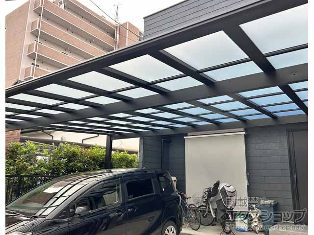 この度は、エフルージュ ツイン FIRSTの施工をエクスショップにお任せ下さり、誠にありがとうございます。直線的なデザインが、ご自宅の外観ともマッチしており素敵なお仕上がりとなりましたね。敷地にぴったりと収まり、圧迫感もなく快適にお使い頂けるものと存じます。屋根のあるスペースが増えることで、駐車以外にも様々な用途で屋根下を有効活用して頂けますので、この先長くご愛用頂けますと幸いです。今後も、安心してお任せ頂けるよう精進して参りますので、また機会がございましたら是非弊社にご用命下さいませ。心よりお待ち致しております。
