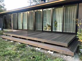 庭と高低差があるので以前は玄関から庭に出入りしていましたが、デッキを設置して頂いてからは部屋から直接庭に出られるようになってストレスもなくなりました。また樹脂木は濡れても気にしなくて良いので、子供達が思いっきり水遊びしています。日中はさすがに表面が高温になりますが、打ち水をすると程よい温度に下がり、子供達はゴロゴロ横になりひなたぼっこできるくらいになっています。デッキDSの商品自体は、木の質感の再現度が高く、樹脂キャップなどが表に出てこないので高級感があります。ほかの商品に比べると割高でしたが、家族皆満足度が高く選んで正解でした。ありがとうございました。