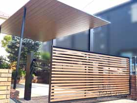 フェンスAB YS3型とカーポートSCの施工をご依頼頂きまして、誠に有り難うございます。ブラックのフレームに、木目調の面がアクセントとなり、ご自宅とも一体感がございますね。屋根までアルミ製のカーポートは、他にはない高級感があり、機能面でも、雨や日光を確実に遮るため、満足度が高いものと存じます。冬場のフロントガラスの凍結や、真夏の車内温度の上昇も抑えられるものと存じます。これからも、快適なお住まいづくりのお手伝いが出来ますよう、日々精進して参ります。また機会がございましたら是非弊社にご用命下さいますよう宜しくお願い致します。
