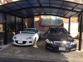 この度は、アリュース ツインの施工をエクスショップにお任せ下さり、誠にありがとうございます。プラチナステンの柱とクリアマットの屋根材の組み合わせで、明るく爽やかな印象のお仕上がりとなりましたね。優しくカーブしたR型の屋根が、大切なお車を汚れや劣化から守ります。また、雨天時の乗り降りの煩わしさや、夏の車内温度の不快感、冬のガラス凍結等を減少させ、1年を通し便利にお使い頂けますので、この先長くご愛用頂けますと幸いです。今後も、安心してお任せ頂けるよう精進して参りますので、また機会がございましたら是非弊社にご用命下さいませ。心よりお待ち致しております。