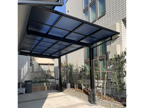 この度は、エフルージュ FIRSTの施工をエクスショップにお任せ下さり、誠にありがとうございます。直線的なデザインとクリアマットの屋根材で、開放的ですっきりとした印象のお仕上がりですね。片側支柱で、ストレスなく快適にご利用頂けるものと存じます。耐久性にも優れた商品ですので、この先長くご愛用頂けますと幸いです。この度の施工により、O様ご家族の暮らしが少しでも快適なものとなっておりましたら嬉しく思います。今後も、安心してお任せ頂けるよう精進して参りますので、また機会がございましたら是非弊社にご用命下さいませ。心よりお待ち致しております。