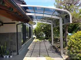プレシオスポート アルファの施工をご依頼頂きまして、誠に有り難うございます。有害な紫外線も遮る、熱線遮断ポリカーボネート(スカイブルーマット調)の屋根が柱側に垂れていることにより、雨や直射日光がお車に当たりにくいカーポートです。新しいお車を美しく保ち、雨の日も、傘を閉じてゆっくり乗り降りして頂けるものと存じます。今後も、常に、お客様のご希望にかなった完成を目指し努力して参ります。また機会がございましたら、是非弊社にご用命頂きますよう宜しくお願い致します。