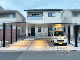 この度は弊社でカーポートSC 3台用の施工のご依頼を頂きまして、誠に有り難うございます。存在感のある3台用の大きなカーポートではございますが、スマートなシルエットが圧迫感なく、ご自宅の外観に見事に調和しておりますね。お車の高さに合わせて勾配を付けられた事で、アシンメトリーなデザイン性のあるお仕上がりとなり、思わず見とれてしまいますね。お車を傷みや劣化から守り、アルミ製の屋根が太陽光線を遮断しますので、1年を通して快適にお車を駐車して頂ける環境になりましたら幸いでございます。これからもお客様のご要望に適った施工の提案が出来るよう、スタッフ並びの提携施工店一同、努力を重ねて参りますので、今後もエクスショップをご愛顧頂きますよう、宜しくお願い申し上げます。