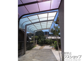 アリュース キャップ 600タイプの施工をご依頼頂きまして、誠に有り難うございます。柱側にきゅっとカーブした屋根から、優しい印象を受けますね。熱線遮断ポリカーボネート(アースブルーマット調)の屋根材は、ただ単に、雨や日光を遮るだけでなく、人にも車にも有害な紫外線をほぼ100%カットします。また、冷え込む朝のフロントガラスの凍結や、真夏の車内温度の上昇も抑えられ、一年を通してカーライフをお楽しみ頂けるものと存じます。これからも豊富な品揃えと丁寧な対応で、お客様にご満足頂けるショップを目指して参ります。また機会がございましたら、是非エクスショップにご用命頂きますよう、宜しくお願い致します。