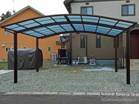 この度は弊社でアリュース 600タイプ 2台用の施工のご依頼を頂きまして、誠に有り難うございます。ハンドメイドの木のベンチやテーブルはとても味があり、素敵でございますね。シンプルなカーポートが周囲の田園風景やベンチ・テーブルに違和感なく収まりました事、嬉しく存じます。熱線遮断ポリカーボネート(アースブルーマット調)の屋根が紫外線や太陽光線を遮りますので、これまで以上に快適にBBQ等を楽しんで頂けるのではないでしょうか。機能性の高いカーポートを永くご愛用頂けますと幸いでございます。これからも業界最安値を目指し、企業努力を重ねて参りますので、今後もエクスショップにご用命頂きますよう、宜しくお願い申し上げます。