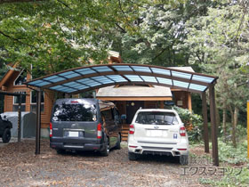 この度は弊社でアリュース 600タイプ 2台用の施工のご依頼を頂きまして、誠に有り難うございます。ハンドメイドの木のベンチやテーブルはとても味があり、素敵でございますね。シンプルなカーポートが周囲の田園風景やベンチ・テーブルに違和感なく収まりました事、嬉しく存じます。熱線遮断ポリカーボネート(アースブルーマット調)の屋根が紫外線や太陽光線を遮りますので、これまで以上に快適にBBQ等を楽しんで頂けるのではないでしょうか。機能性の高いカーポートを永くご愛用頂けますと幸いでございます。これからも業界最安値を目指し、企業努力を重ねて参りますので、今後もエクスショップにご用命頂きますよう、宜しくお願い申し上げます。