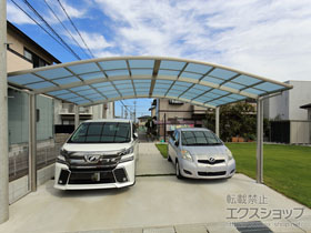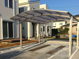 この度は弊社でアリュース 600タイプ 2台用の施工のご依頼を頂きまして、誠に有り難うございます。明るいプラチナステンのフレームが、周囲の木々と自然に馴染み、敷地内に綺麗に収まりました事、喜ばしく存じます。広々とした2台用のカーポートの下で、お車のメンテナンスや洗車等もして頂けますので、大切なお車と共にカーポートを永くご愛用頂けますと幸いでございます。これからもお客様のご期待に応えられるよう、企業努力を重ねて参りますので、今後もエクスショップをご愛顧頂きますよう、宜しくお願い申し上げます。