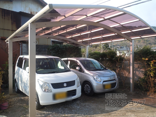この度は弊社でアリュース 600タイプ 2台用の施工のご依頼を頂きまして、誠に有り難うございます。陽の光を受けて輝くプラチナステンのお色のカーポートが、周囲の深緑の景色に違和感なく収まりました事、喜ばしく存じます。雨や紫外線・飛来物からお車を守り、夏場の直射日光を和らげますので、お車ご使用の際、スムーズにお出かけして頂けるのではないかと存じます。大切なお車と共に、カーポートを永くご愛用頂けますと幸いでございます。これからも業界最安値を目指し、企業努力を重ねて参りますので、今後もエクスショップにご用命頂きますよう、宜しくお願い申し上げます。