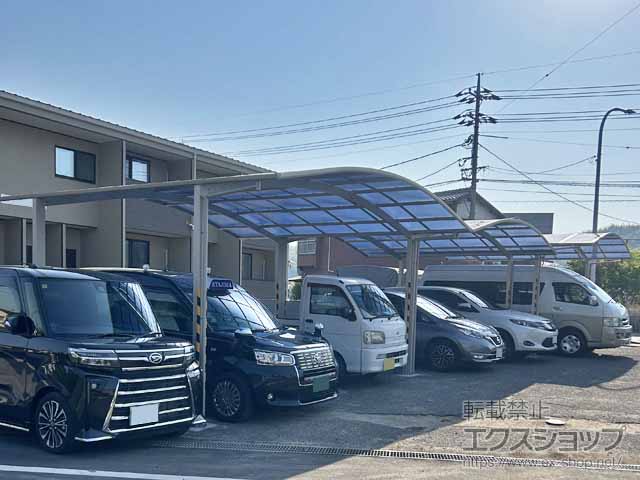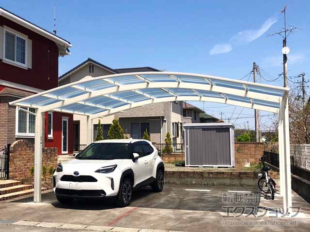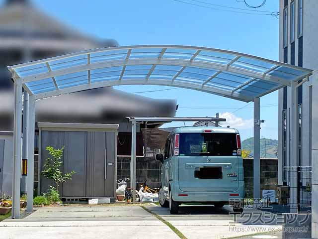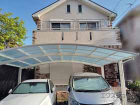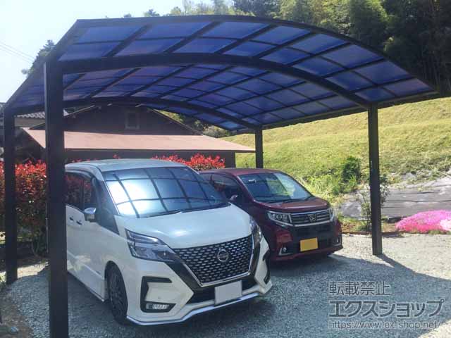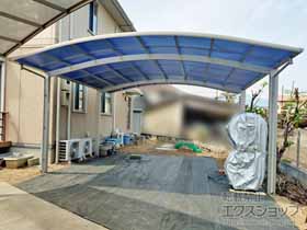 この度は弊社でアリュース 600タイプ 2台用の施工のご依頼を頂きまして、誠に有り難うございます。しなやかな曲線が美しいカーポートが、ご自宅のイメージを損ねる事なく完成し、風や光の通りを感じられる圧迫感のないお仕上がりでございますね。熱線遮断ポリカーボネート(クリアマット)の屋根は、雨の日に濡れずにお車の乗り降りが出来、紫外線透過率はほぼ0%ですので、お車の塗装の劣化が少しでも軽減しましたら幸いでございます。これからもお客様の快適な暮らしの為に、スタッフ並びに提携施工店一同日々精進して参りますので、今後もエクスショップをご愛顧頂きますよう、宜しくお願い申し上げます。