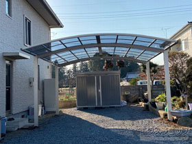 この度は、アリュース 600タイプの施工をエクスショップにお任せ下さり、誠にありがとうございます。敷地をしっかり覆うサイズのカーポートが設置され、快適な駐車スペースとなった事と存じます。熱線遮断ポリカーボネートが、大切なお車を汚れや劣化から守りながら、雨天時の乗り降りの煩わしさや、夏の車内温度の不快感等も解消してくれます。快適な毎日の手助けをしてくれるカーポートを、この先長くご愛用頂けますと幸いです。今後も、安心してお任せ頂けるよう精進して参りますので、また機会がございましたら是非弊社にご用命下さいませ。心よりお待ち致しております。