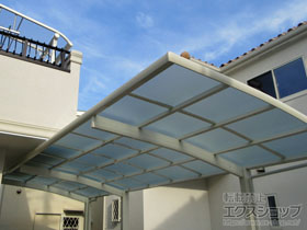 ホワイトのフレームのアリュース 600タイプ 1台用 奥行延長セットが、快晴の空に良く映えますね。雨だけでなく、有害な紫外線や熱も遮りますので、お車の保護に効果的かと存じます。また、夏場の車内温度の上昇も抑えられますので、いつでも快適にお車をご利用頂けるものと存じます。今後も、常に、お客様のご希望にかなった完成を目指し、努力して参ります。また機会がございましたら、是非エクスショップにご用命頂きますよう宜しくお願い致します。この度のご利用、誠に有り難うございました。