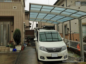 この度は、カーポートの施工をご依頼頂きまして、誠に有り難うございます。アリュース 600タイプ 1台用 奥行延長セットは、お車1台分より少し屋根が長めですので、お車の後方に自転車なども置いて頂けますね。熱線遮断ポリカーボネート(アースブルーマット調)の屋根材が、雨や紫外線だけでなく、太陽の熱も遮断し、屋根の下は少し涼しく感じられるのではないでしょうか。これからも豊富な品揃えと丁寧な対応で、お客様にご満足頂けるショップを目指して参ります。また機会がございましたら、是非エクスショップにご用命頂きますよう、宜しくお願い致します。