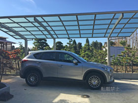 カーポートの施工をエクスショップにご用命頂きまして、誠に有り難うございます。熱線遮断ポリカーボネート(クリアマット)の屋根が、雨や直射日光を遮り、夏場の車内温度の上昇、冬場のフロントガラスの凍結、並びに、雨天時のお車の汚れなど、お車に関する多くの悩みが解消されるものと存じます。負担が少しでも軽減され、お子様とのお出掛けなどをお楽しみ頂ければと存じます。これからも、エクスショップをご利用頂いた皆様に笑顔の輪が広がりますよう、なお一層の努力を重ねて参りたいと存じます。またのご利用を、心よりお待ち申し上げております。