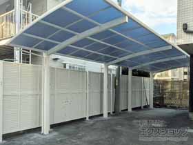 この度は、アリュース 600タイプ 縦連棟セットの施工をエクスショップにお任せ下さり、誠にありがとうございます。敷地にぴったりとカーポートが収まり、圧迫感のないお仕上がりですね。十分な広さがあり、多くの自転車をスムーズに駐輪して頂けることと存じます。汚れや劣化から自転車を守り、雨天時の乗り降りの煩わしさも解消されますので、入居者の皆さまの満足度にもつながっておりましたら幸いです。エクスショップでは、暮らしを豊かにするエクステリア商品を多数取り揃えておりますので、また機会がございましたら是非弊社にご用命下さいませ。心よりお待ち致しております。