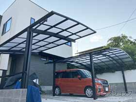 アリュース 600タイプ 縦連棟セット(4台用)とプレシオスポート アール型の施工をご依頼頂きまして、誠に有り難うございます。無駄のないすっきりしたデザインですので、屋根の下も広々とご使用頂けるものと存じます。熱線遮断ポリカーボネートの屋根材は、雨だけでなく、有害な紫外線や熱も遮断するため、1年を通して快適にご使用頂けるものと存じます。特に、お車4台分のスペースは広々として、様々な用途にご活用頂けますね。これからも、エクステリアの施工を通じて、豊かな暮らしのお手伝いをして参ります。また機会がございましたら、是非エクスショップにご用命頂きますよう宜しくお願い致します。