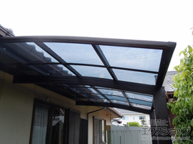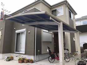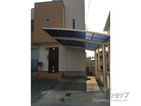 この度は弊社でプレシオスポート アール型 1台用の施工のご依頼を頂きまして、誠に有り難うございます。落ち着いたお色味でご自宅や周囲の景観に調和する、グレースブラウンのフレームのカーポートが、敷地内に自然に収まりました事。嬉しく存じます。屋根が出来た事により、車の汚れ軽減をご実感頂けているとの事で、安堵しております。ポリカーボネート(スカイブルー)の屋根は紫外線透過率ほぼ0%のため、色あせ等の軽減にも効果を期待できるのではないかと存じます。これからもお客様の快適な暮らしの為に、商品知識の向上に努めて参りますので、今後もエクスショップをご愛顧頂きますよう、宜しくお願い申し上げます。