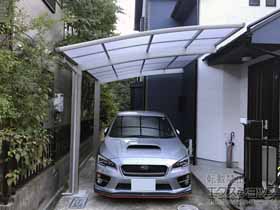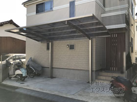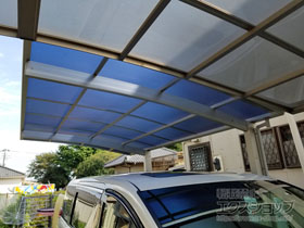 この度は弊社でプレシオスポート アール型 1台用の施工のご依頼を頂きまして、誠に有り難うございます。落ち着いたお色味でご自宅や周囲の景観に調和する、グレースブラウンのフレームのカーポートが、敷地内に自然に収まりました事。嬉しく存じます。屋根が出来た事により、車の汚れ軽減をご実感頂けているとの事で、安堵しております。ポリカーボネート(スカイブルー)の屋根は紫外線透過率ほぼ0%のため、色あせ等の軽減にも効果を期待できるのではないかと存じます。これからもお客様の快適な暮らしの為に、商品知識の向上に努めて参りますので、今後もエクスショップをご愛顧頂きますよう、宜しくお願い申し上げます。