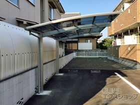 アリュース 600タイプ 縦連棟セット(4台用)とプレシオスポート アール型の施工をご依頼頂きまして、誠に有り難うございます。無駄のないすっきりしたデザインですので、屋根の下も広々とご使用頂けるものと存じます。熱線遮断ポリカーボネートの屋根材は、雨だけでなく、有害な紫外線や熱も遮断するため、1年を通して快適にご使用頂けるものと存じます。特に、お車4台分のスペースは広々として、様々な用途にご活用頂けますね。これからも、エクステリアの施工を通じて、豊かな暮らしのお手伝いをして参ります。また機会がございましたら、是非エクスショップにご用命頂きますよう宜しくお願い致します。