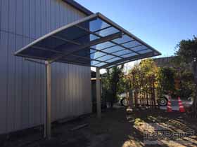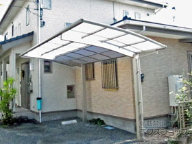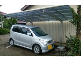 この度は弊社でプレシオスポート アール型 1台用の施工のご依頼を頂きまして、誠に有り難うございます。落ち着いたお色味でご自宅や周囲の景観に調和する、グレースブラウンのフレームのカーポートが、敷地内に自然に収まりました事。嬉しく存じます。屋根が出来た事により、車の汚れ軽減をご実感頂けているとの事で、安堵しております。ポリカーボネート(スカイブルー)の屋根は紫外線透過率ほぼ0%のため、色あせ等の軽減にも効果を期待できるのではないかと存じます。これからもお客様の快適な暮らしの為に、商品知識の向上に努めて参りますので、今後もエクスショップをご愛顧頂きますよう、宜しくお願い申し上げます。