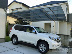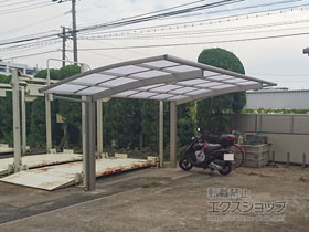 アリュース 600タイプ 縦連棟セット(4台用)とプレシオスポート アール型の施工をご依頼頂きまして、誠に有り難うございます。無駄のないすっきりしたデザインですので、屋根の下も広々とご使用頂けるものと存じます。熱線遮断ポリカーボネートの屋根材は、雨だけでなく、有害な紫外線や熱も遮断するため、1年を通して快適にご使用頂けるものと存じます。特に、お車4台分のスペースは広々として、様々な用途にご活用頂けますね。これからも、エクステリアの施工を通じて、豊かな暮らしのお手伝いをして参ります。また機会がございましたら、是非エクスショップにご用命頂きますよう宜しくお願い致します。