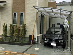アリュース 600タイプ 縦連棟セット(4台用)とプレシオスポート アール型の施工をご依頼頂きまして、誠に有り難うございます。無駄のないすっきりしたデザインですので、屋根の下も広々とご使用頂けるものと存じます。熱線遮断ポリカーボネートの屋根材は、雨だけでなく、有害な紫外線や熱も遮断するため、1年を通して快適にご使用頂けるものと存じます。特に、お車4台分のスペースは広々として、様々な用途にご活用頂けますね。これからも、エクステリアの施工を通じて、豊かな暮らしのお手伝いをして参ります。また機会がございましたら、是非エクスショップにご用命頂きますよう宜しくお願い致します。