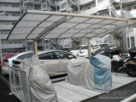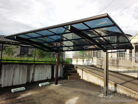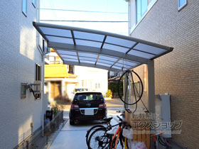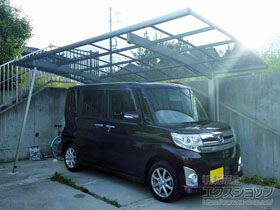 アリュース 600タイプ 縦連棟セット(4台用)とプレシオスポート アール型の施工をご依頼頂きまして、誠に有り難うございます。無駄のないすっきりしたデザインですので、屋根の下も広々とご使用頂けるものと存じます。熱線遮断ポリカーボネートの屋根材は、雨だけでなく、有害な紫外線や熱も遮断するため、1年を通して快適にご使用頂けるものと存じます。特に、お車4台分のスペースは広々として、様々な用途にご活用頂けますね。これからも、エクステリアの施工を通じて、豊かな暮らしのお手伝いをして参ります。また機会がございましたら、是非エクスショップにご用命頂きますよう宜しくお願い致します。