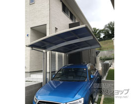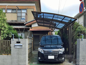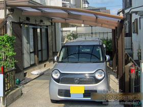 この度は弊社でプレシオスポート アール型 1台用の施工のご依頼を頂きまして、誠に有り難うございます。落ち着いたお色味でご自宅や周囲の景観に調和する、グレースブラウンのフレームのカーポートが、敷地内に自然に収まりました事。嬉しく存じます。屋根が出来た事により、車の汚れ軽減をご実感頂けているとの事で、安堵しております。ポリカーボネート(スカイブルー)の屋根は紫外線透過率ほぼ0%のため、色あせ等の軽減にも効果を期待できるのではないかと存じます。これからもお客様の快適な暮らしの為に、商品知識の向上に努めて参りますので、今後もエクスショップをご愛顧頂きますよう、宜しくお願い申し上げます。