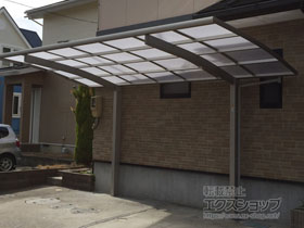 この度は弊社でプレシオスポート アール型 1台用の施工のご依頼を頂きまして、誠に有り難うございます。落ち着いたお色味でご自宅や周囲の景観に調和する、グレースブラウンのフレームのカーポートが、敷地内に自然に収まりました事。嬉しく存じます。屋根が出来た事により、車の汚れ軽減をご実感頂けているとの事で、安堵しております。ポリカーボネート(スカイブルー)の屋根は紫外線透過率ほぼ0%のため、色あせ等の軽減にも効果を期待できるのではないかと存じます。これからもお客様の快適な暮らしの為に、商品知識の向上に努めて参りますので、今後もエクスショップをご愛顧頂きますよう、宜しくお願い申し上げます。
