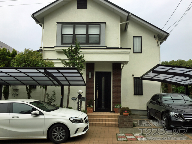 アリュース 600タイプ 縦連棟セット(4台用)とプレシオスポート アール型の施工をご依頼頂きまして、誠に有り難うございます。無駄のないすっきりしたデザインですので、屋根の下も広々とご使用頂けるものと存じます。熱線遮断ポリカーボネートの屋根材は、雨だけでなく、有害な紫外線や熱も遮断するため、1年を通して快適にご使用頂けるものと存じます。特に、お車4台分のスペースは広々として、様々な用途にご活用頂けますね。これからも、エクステリアの施工を通じて、豊かな暮らしのお手伝いをして参ります。また機会がございましたら、是非エクスショップにご用命頂きますよう宜しくお願い致します。