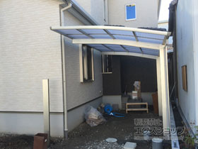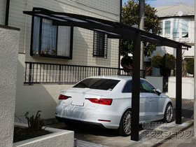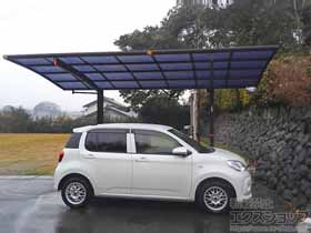 この度は弊社でプレシオスポート アール型 1台用の施工のご依頼を頂きまして、誠に有り難うございます。落ち着いたお色味でご自宅や周囲の景観に調和する、グレースブラウンのフレームのカーポートが、敷地内に自然に収まりました事。嬉しく存じます。屋根が出来た事により、車の汚れ軽減をご実感頂けているとの事で、安堵しております。ポリカーボネート(スカイブルー)の屋根は紫外線透過率ほぼ0%のため、色あせ等の軽減にも効果を期待できるのではないかと存じます。これからもお客様の快適な暮らしの為に、商品知識の向上に努めて参りますので、今後もエクスショップをご愛顧頂きますよう、宜しくお願い申し上げます。