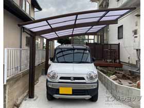 この度は弊社でプレシオスポート アール型 1台用の施工のご依頼を頂きまして、誠に有り難うございます。落ち着いたお色味でご自宅や周囲の景観に調和する、グレースブラウンのフレームのカーポートが、敷地内に自然に収まりました事。嬉しく存じます。屋根が出来た事により、車の汚れ軽減をご実感頂けているとの事で、安堵しております。ポリカーボネート(スカイブルー)の屋根は紫外線透過率ほぼ0%のため、色あせ等の軽減にも効果を期待できるのではないかと存じます。これからもお客様の快適な暮らしの為に、商品知識の向上に努めて参りますので、今後もエクスショップをご愛顧頂きますよう、宜しくお願い申し上げます。