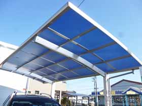 この度は、プレシオスポート アール型の施工をご依頼頂きまして、誠に有り難うございます。柱をブロック塀の内側に設置したことで、駐車スペースを広く確保することができましたね。夏場は車内温度の上昇を抑える熱線遮断ポリカーボネート(スカイブルー・マット調)の屋根は、冬場の霜対策にもご期待頂けます。雨の日の乗り降りも快適になり、1年を通して、カーポートの効果を感じて頂けるものと存じます。これからもお客様に安心と満足をお届け出来るよう、日々精進して参ります。また、機会がございましたら、是非弊社にご用命くださいますよう、宜しくお願い致します。