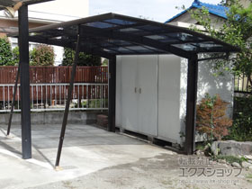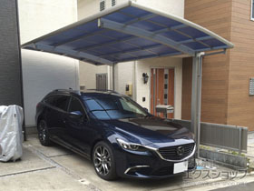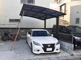 この度は弊社でプレシオスポート アール型 1台用の施工のご依頼を頂きまして、誠に有り難うございます。落ち着いたお色味でご自宅や周囲の景観に調和する、グレースブラウンのフレームのカーポートが、敷地内に自然に収まりました事。嬉しく存じます。屋根が出来た事により、車の汚れ軽減をご実感頂けているとの事で、安堵しております。ポリカーボネート(スカイブルー)の屋根は紫外線透過率ほぼ0%のため、色あせ等の軽減にも効果を期待できるのではないかと存じます。これからもお客様の快適な暮らしの為に、商品知識の向上に努めて参りますので、今後もエクスショップをご愛顧頂きますよう、宜しくお願い申し上げます。