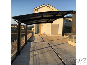 この度は弊社でプレシオスポート アール型 1台用の施工のご依頼を頂きまして、誠に有り難うございます。落ち着いたお色味でご自宅や周囲の景観に調和する、グレースブラウンのフレームのカーポートが、敷地内に自然に収まりました事。嬉しく存じます。屋根が出来た事により、車の汚れ軽減をご実感頂けているとの事で、安堵しております。ポリカーボネート(スカイブルー)の屋根は紫外線透過率ほぼ0%のため、色あせ等の軽減にも効果を期待できるのではないかと存じます。これからもお客様の快適な暮らしの為に、商品知識の向上に努めて参りますので、今後もエクスショップをご愛顧頂きますよう、宜しくお願い申し上げます。