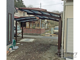 この度は弊社でプレシオスポート アール型 1台用の施工のご依頼を頂きまして、誠に有り難うございます。落ち着いたお色味でご自宅や周囲の景観に調和する、グレースブラウンのフレームのカーポートが、敷地内に自然に収まりました事。嬉しく存じます。屋根が出来た事により、車の汚れ軽減をご実感頂けているとの事で、安堵しております。ポリカーボネート(スカイブルー)の屋根は紫外線透過率ほぼ0%のため、色あせ等の軽減にも効果を期待できるのではないかと存じます。これからもお客様の快適な暮らしの為に、商品知識の向上に努めて参りますので、今後もエクスショップをご愛顧頂きますよう、宜しくお願い申し上げます。