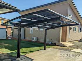 アリュース 600タイプ 縦連棟セット(4台用)とプレシオスポート アール型の施工をご依頼頂きまして、誠に有り難うございます。無駄のないすっきりしたデザインですので、屋根の下も広々とご使用頂けるものと存じます。熱線遮断ポリカーボネートの屋根材は、雨だけでなく、有害な紫外線や熱も遮断するため、1年を通して快適にご使用頂けるものと存じます。特に、お車4台分のスペースは広々として、様々な用途にご活用頂けますね。これからも、エクステリアの施工を通じて、豊かな暮らしのお手伝いをして参ります。また機会がございましたら、是非エクスショップにご用命頂きますよう宜しくお願い致します。