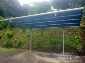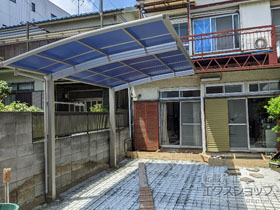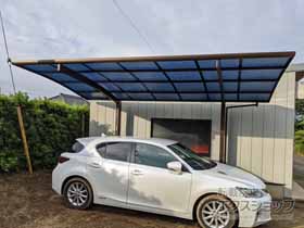 この度は弊社でプレシオスポート アール型 1台用の施工のご依頼を頂きまして、誠に有り難うございます。落ち着いたお色味でご自宅や周囲の景観に調和する、グレースブラウンのフレームのカーポートが、敷地内に自然に収まりました事。嬉しく存じます。屋根が出来た事により、車の汚れ軽減をご実感頂けているとの事で、安堵しております。ポリカーボネート(スカイブルー)の屋根は紫外線透過率ほぼ0%のため、色あせ等の軽減にも効果を期待できるのではないかと存じます。これからもお客様の快適な暮らしの為に、商品知識の向上に努めて参りますので、今後もエクスショップをご愛顧頂きますよう、宜しくお願い申し上げます。