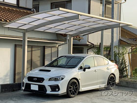 この度は弊社でプレシオスポート アール型 1台用の施工のご依頼を頂きまして、誠に有り難うございます。落ち着いたお色味でご自宅や周囲の景観に調和する、グレースブラウンのフレームのカーポートが、敷地内に自然に収まりました事。嬉しく存じます。屋根が出来た事により、車の汚れ軽減をご実感頂けているとの事で、安堵しております。ポリカーボネート(スカイブルー)の屋根は紫外線透過率ほぼ0%のため、色あせ等の軽減にも効果を期待できるのではないかと存じます。これからもお客様の快適な暮らしの為に、商品知識の向上に努めて参りますので、今後もエクスショップをご愛顧頂きますよう、宜しくお願い申し上げます。
